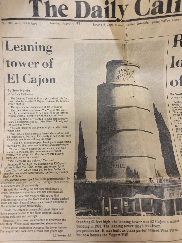 Now let’s talk about what Yogurt Mill is and why you should believe it is the best frozen yogurt shop in San Diego. Yogurt Mill is a family owned business that started in El Cajon, CA in 1977 by two teachers, Joe Thunder and Wayne Colborne. A couple years later a third owner was added Shari Newquist and these three owners have stayed the same for the past 45 years. Yogurt Mill started with only 4 flavors and a few toppings and has continued to grow to now serving 60 different flavors and over 30 toppings. Yogurt Mill is known for our delicious yogurt but also for the “Mill” itself. By the “Mill” we mean, the building itself, it is an actual giant mill. Originally the building was a pizza place and was built to resemble The Leaning Tower of Pisa, but once bought by The Yogurt Mill owners turned it into a mill itself. With the “Mill” being so big it is almost a landmark for the people of East County. It is fun for pictures and just for the nostalgia of it being there for so many years. People know if you are coming to Yogurt Mill you can expect to see that tower of yogurt waiting for you.