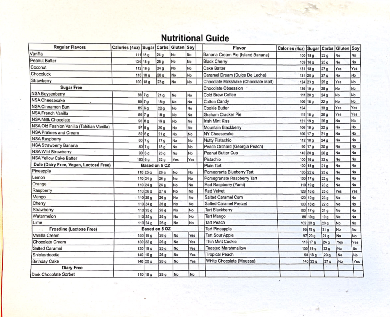 Want to see the nutritional facts on every flavor we offer? Click Below!